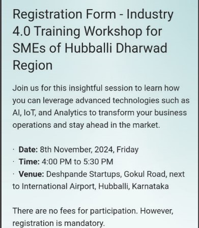 SME Leaders and owners of Hubballi and Dharwad region was scheduled on 8th November 2024, at Deshpande Startups, Hubballi. ...